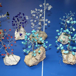 Drzewka szczęścia wykonane przez panie z Samorządowego Ośrodka Kultury w Tuszymie, koło Mielca. Drzewka wykonałyśmy przy pomocy drucika, kamieni półszlachetnych, naturalnych i syntetycznych oraz koralików